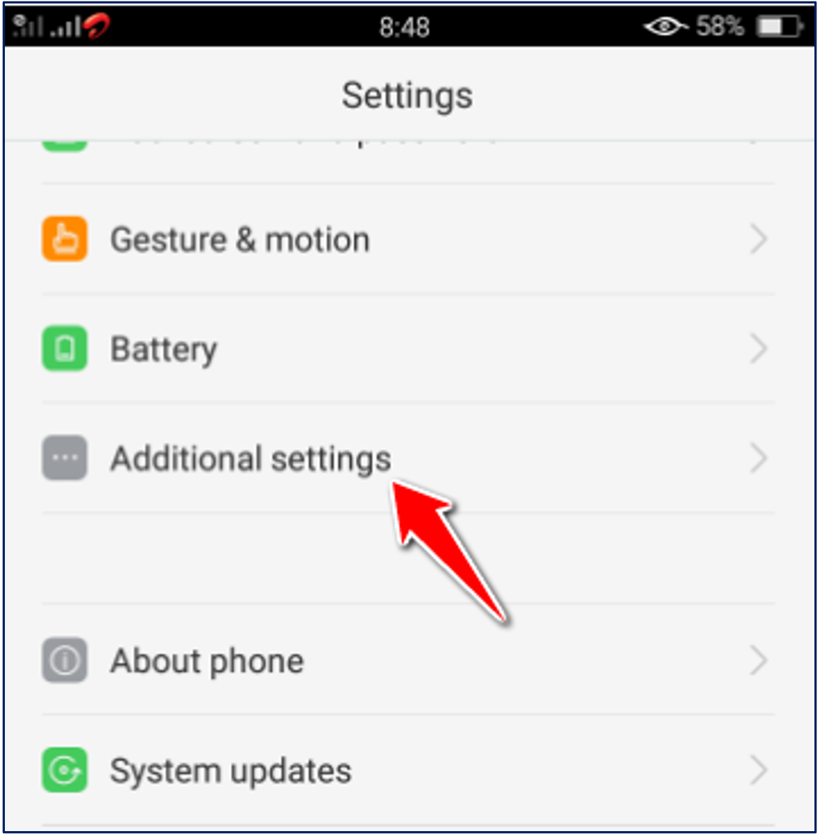 2. Navigate to Additional Settings (On some devices this may appear under Connected Devices, Advanced Settings, or a similar menu.)