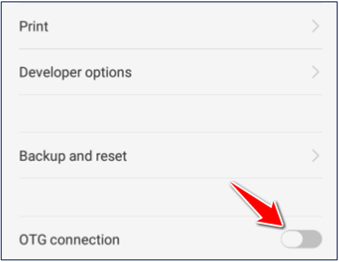 4. Enable (toggle on) the OTG option. Once enabled, your phone will activate OTG mode and allow communication with external USB devices.