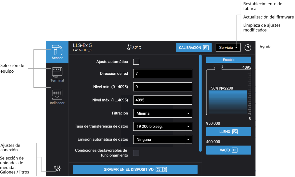 Configuración de sensor Omnicomm LLS-Ex 5