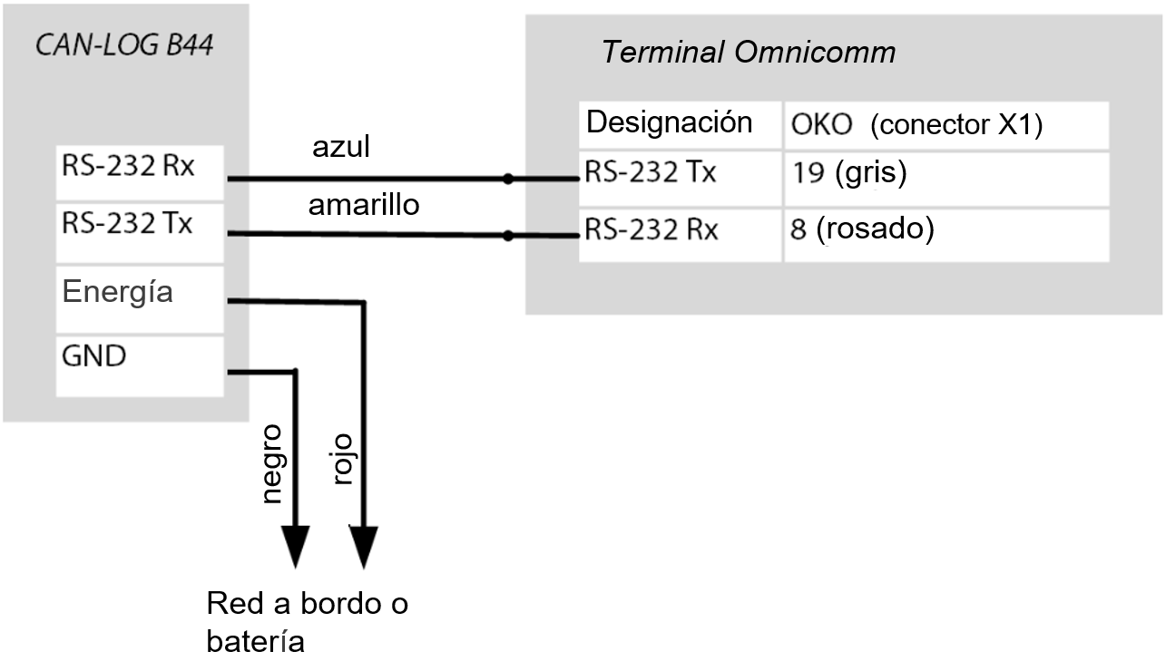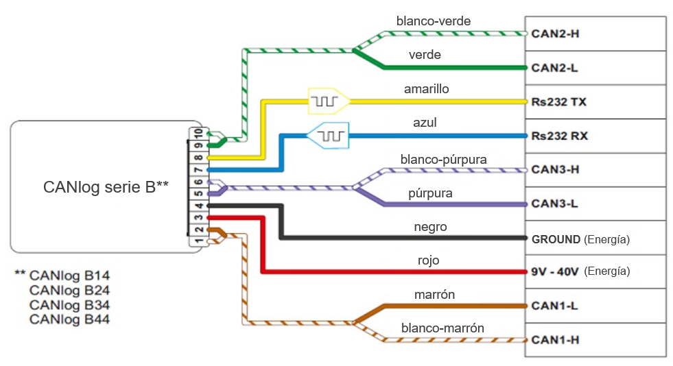 Conecte el CAN-LOG de las series B14, B24, B34, B44 al bus CAN del vehículo de acuerdo con la imagen: